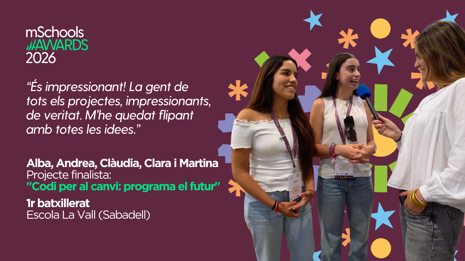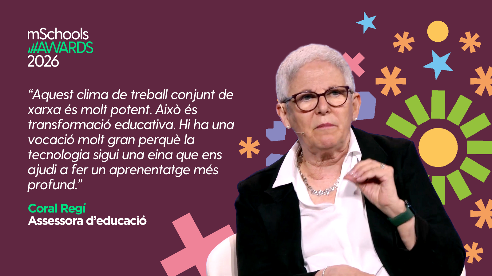 Als mSchools Awards 2026 celebrem la creativitat, l’esforç i el compromís que fan possible la millora educativa cada dia. Volem donar visibilitat a projectes que connecten l’aula amb el món, que donen sentit a la tecnologia i converteixen l’aprenentatge en acció davant els reptes reals. Fem visible l’invisible.